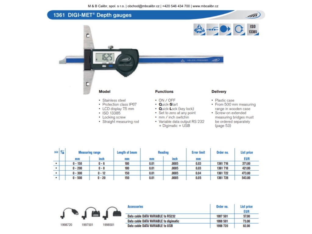 Digitální hloubkoměr 300/0,01 mm IP67 Helios Preisser