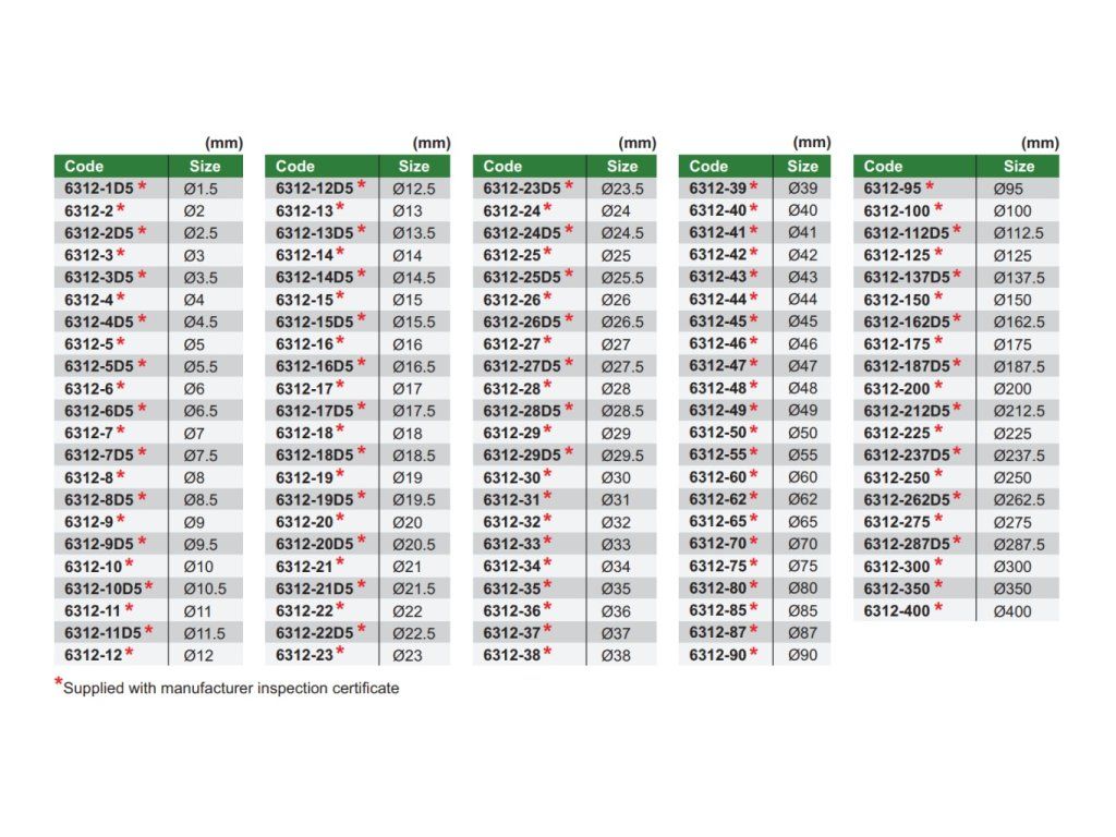 | 6312-287D5 | 287,5 mm | 3 µm |