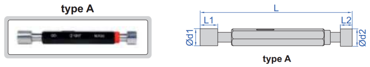 | Produkt | Průměr | Tolerance velikosti GO | Tolerance velikosti NOGO | L1 | L2 | L |