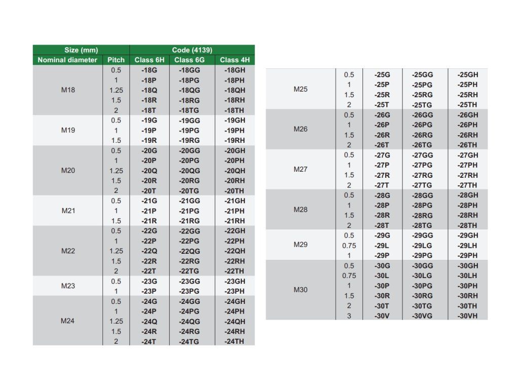 | 4139-29GG | 29 mm | 0,5 mm | 6G | M29×0,5-6G | M29-6G |