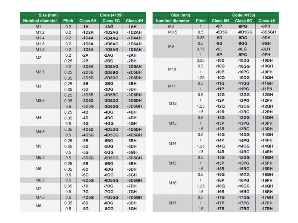 | 4139-100T | 100 mm | 2 mm | 6H | M100×2-6H | M100-6H |