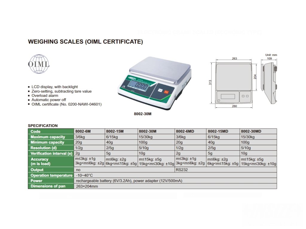 Elektronická váha 6 kg/2 g, OIML certifikát, výstup dat INSIZE