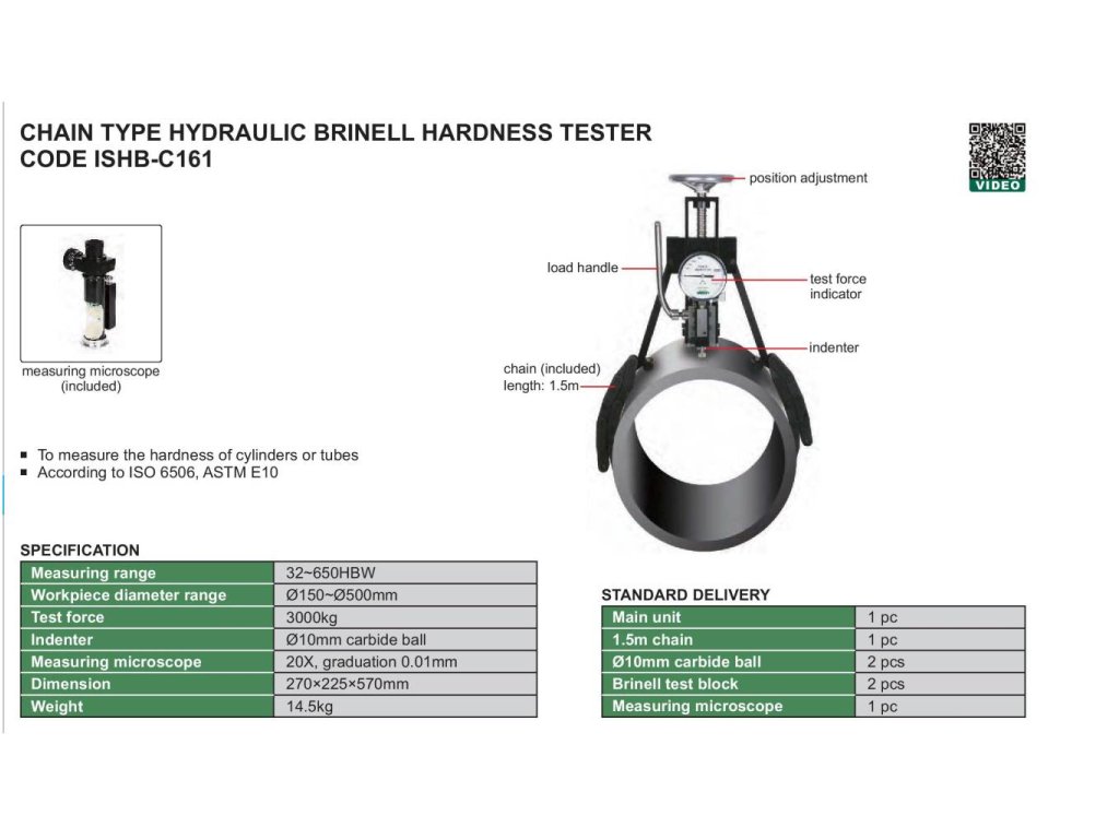 - Hydraulický tvrdoměr Brinell na kroužky a trubky ISHB-C161 INSIZE