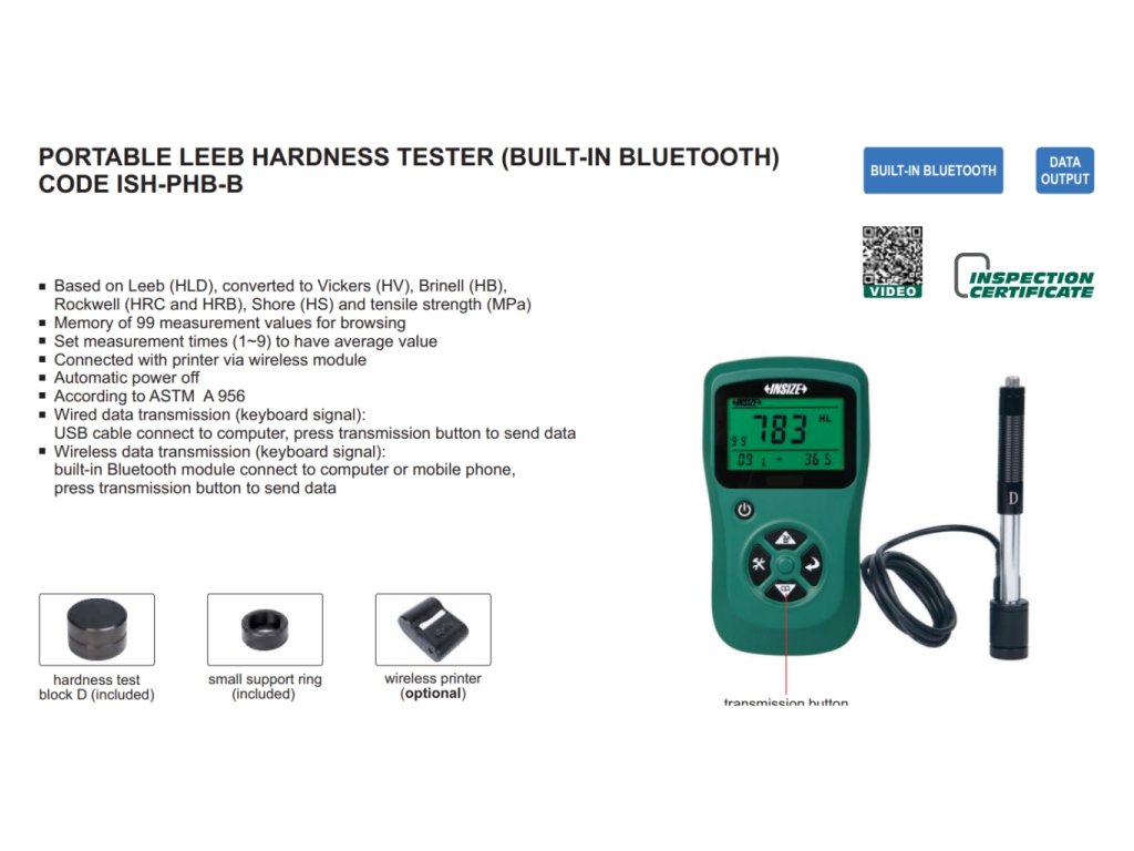 Přenosný tvrdoměr Leeb, bluetooth INSIZE ISH-PHB-B