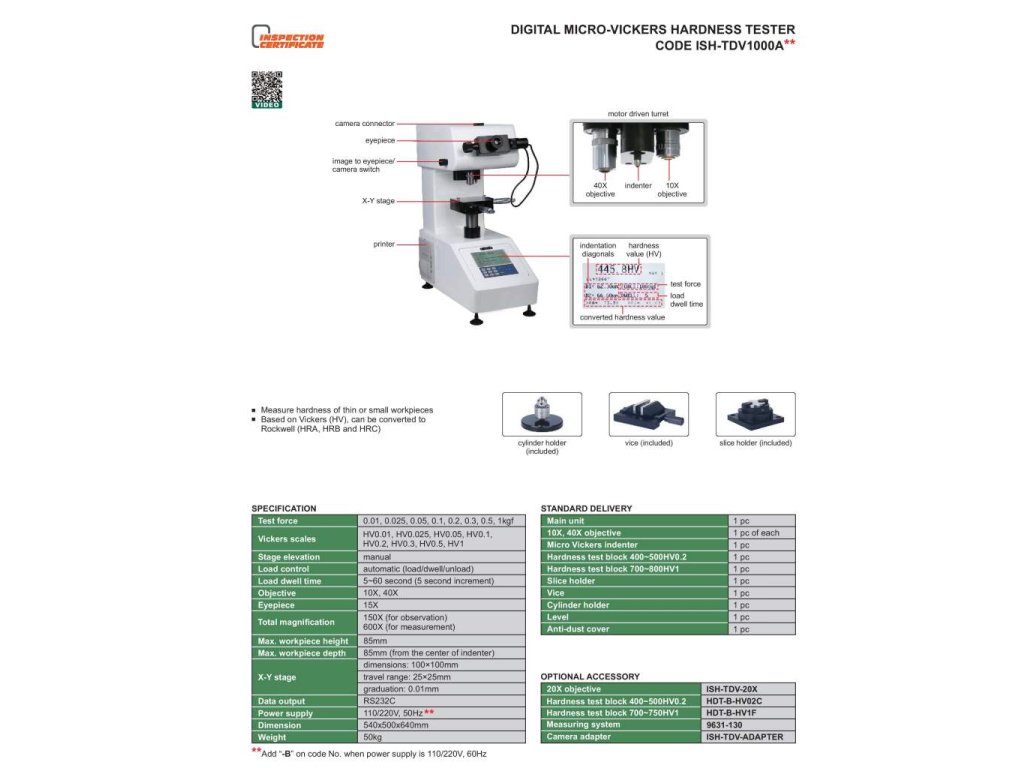 - Digitální tvrdoměr Micro-Vickers INSIZE ISH-TDV1000A