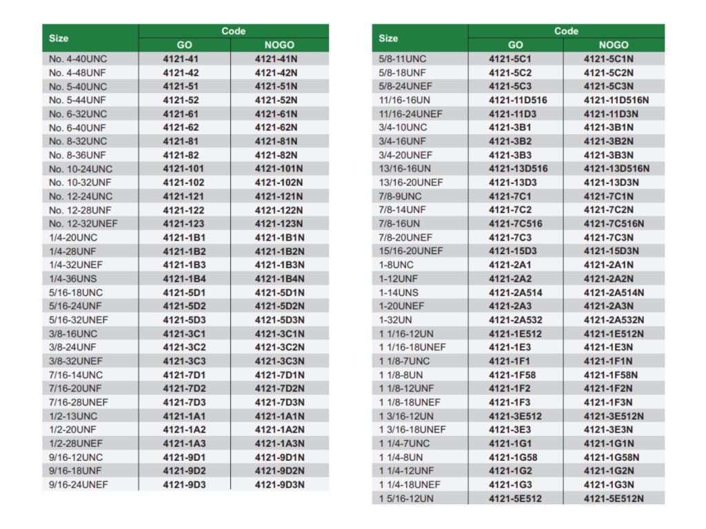 | 4121-102 | 10-32 | UNF | GO | No. 10-32UNF | No. 10-32UNF-2A |