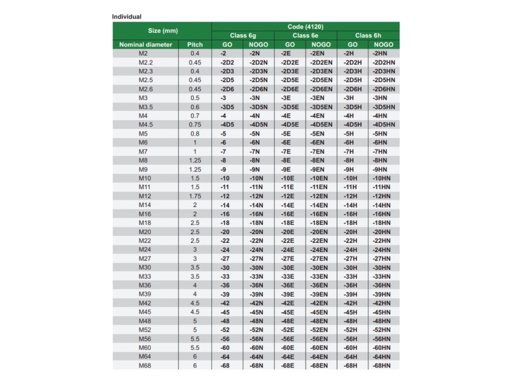 | 4120-12E | 12 mm | 1,75 mm | 6e | GO | M12×1,75-6e | M12-6e |