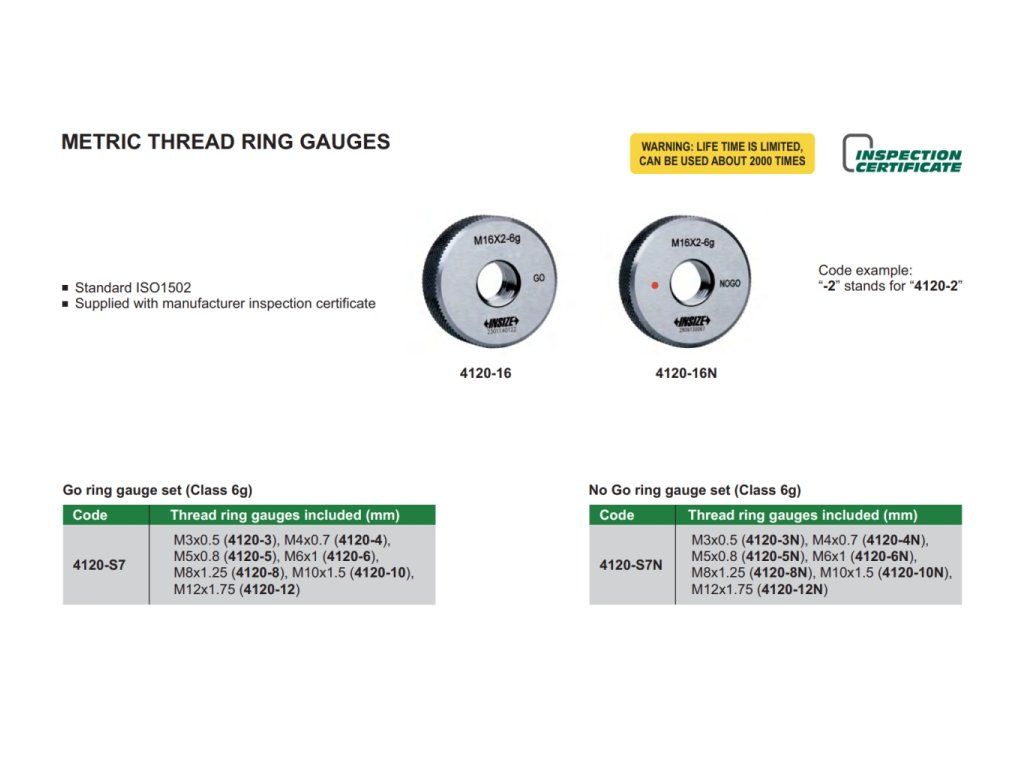 | 4120-64N | 64 mm | 6 mm | 6g | NOGO | M64×6-6g | M64-6g |